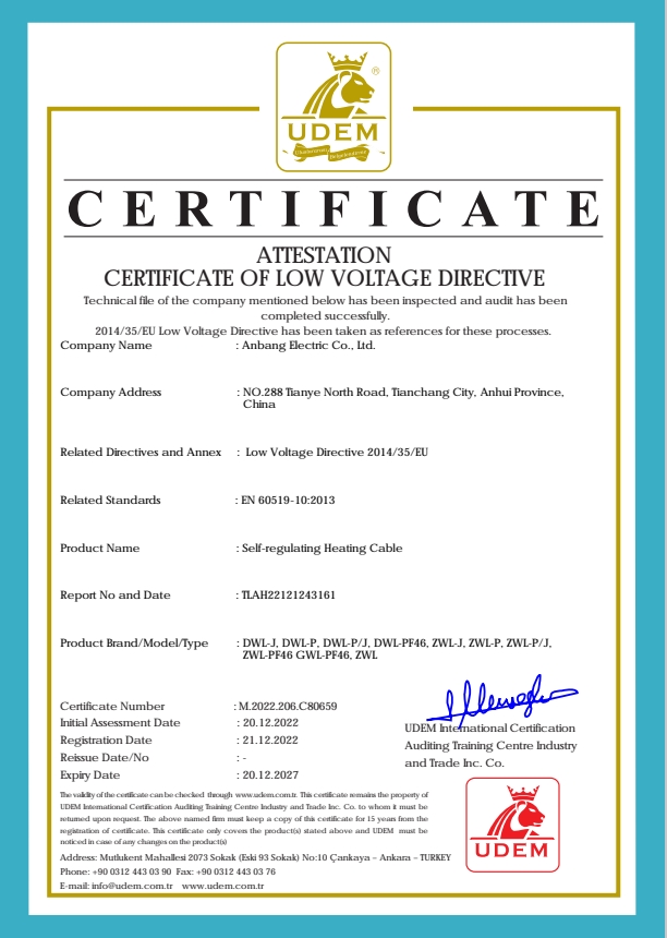 安邦電氣股份有限公司,總部位于北京市長安街,成立于2004年,注冊資金10088萬。安徽生產(chǎn)基地占地面積63000平方米,擁有66套各類生產(chǎn)線,其中進(jìn)口生產(chǎn)線6套。國家高新技術(shù)型企業(yè),滁州市市長質(zhì)量獎企業(yè),專精特新“小巨人”企業(yè),擁有國家知識產(chǎn)權(quán)局授權(quán)的45項專利,其中發(fā)明專利28項 , 主筆《太陽能熱利用自限溫電熱帶安裝規(guī)范》行業(yè)標(biāo)準(zhǔn),參編《自限溫電伴熱帶》國家標(biāo)準(zhǔn)、《工業(yè)和商業(yè)用電阻式伴熱系統(tǒng)》國家標(biāo)準(zhǔn)、《太陽能熱利用自限溫電熱帶》行業(yè)標(biāo)準(zhǔn)、《爆炸性環(huán)境 電阻式伴熱器》國家標(biāo)準(zhǔn)等7項國家標(biāo)準(zhǔn)。企業(yè)通過UL認(rèn)證,國家強(qiáng)制性 CCC產(chǎn)品認(rèn)證,ISO9001質(zhì)量管理體系認(rèn)證,ISO14001環(huán)境管理體系認(rèn)證,ISO45001職業(yè)健康安全管理體系認(rèn)證,Q/SHS0001.1健康、安全與環(huán)境管理體系認(rèn)證,歐盟防爆ATEX認(rèn)證,歐盟CE認(rèn)證,RoHS認(rèn)證,俄羅斯海關(guān)聯(lián)盟認(rèn)證,國家防爆電氣CCC證書。產(chǎn)品系列:集膚伴熱系統(tǒng)、電伴熱系統(tǒng)、電加熱器、電地暖系統(tǒng)、集儀器儀表、電線電纜、高低壓配電柜(箱)、電纜橋架、閥門管件等等設(shè)計、制造、銷售。產(chǎn)品應(yīng)用于航天航空、軍工、石油、石化、天然氣、機(jī)場、化工、鋼鐵、隧道、消防、養(yǎng)殖、融雪化冰、室內(nèi)供暖、國家電網(wǎng)及眾多電廠等等國家重點(diǎn)工程。出口美國、英國、德國、俄羅斯、韓國、日本、哈薩克斯坦、烏克蘭、伊朗等眾多國家。